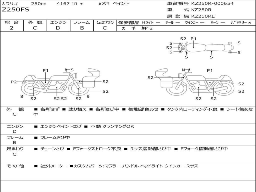 | Номер рамы / VIN | KZ250R-000654 |