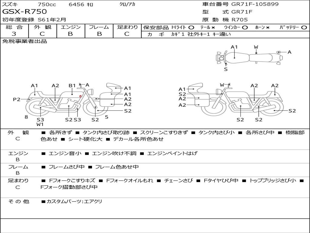 | Номер рамы / VIN | GR71F-105899 |