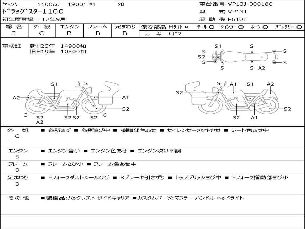 | Номер рамы / VIN | VP13J-000180 |