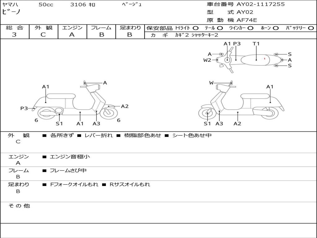 | Номер рамы / VIN | AY02-1117255 |