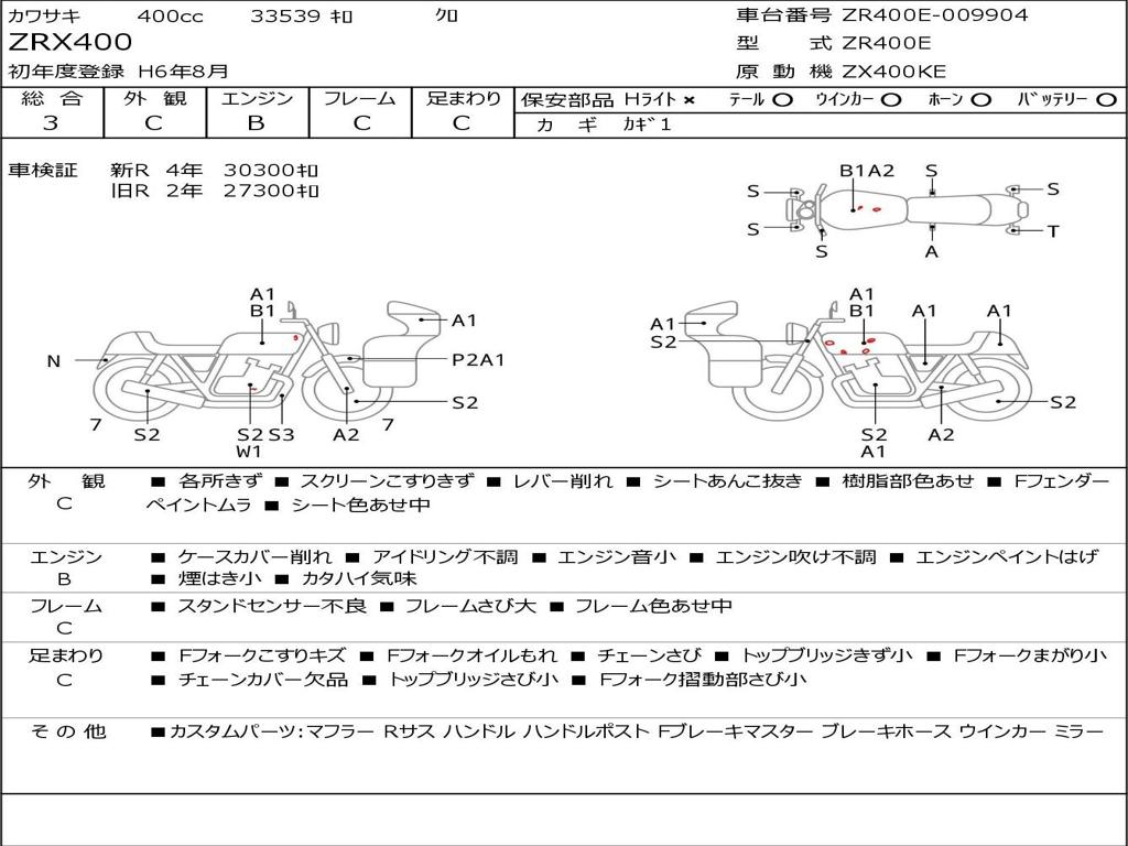 | Номер рамы / VIN | ZR400E-009904 |