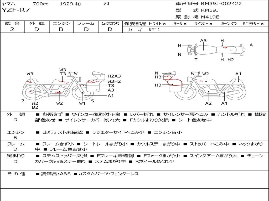 | Номер рамы / VIN | RM39J-002422 |