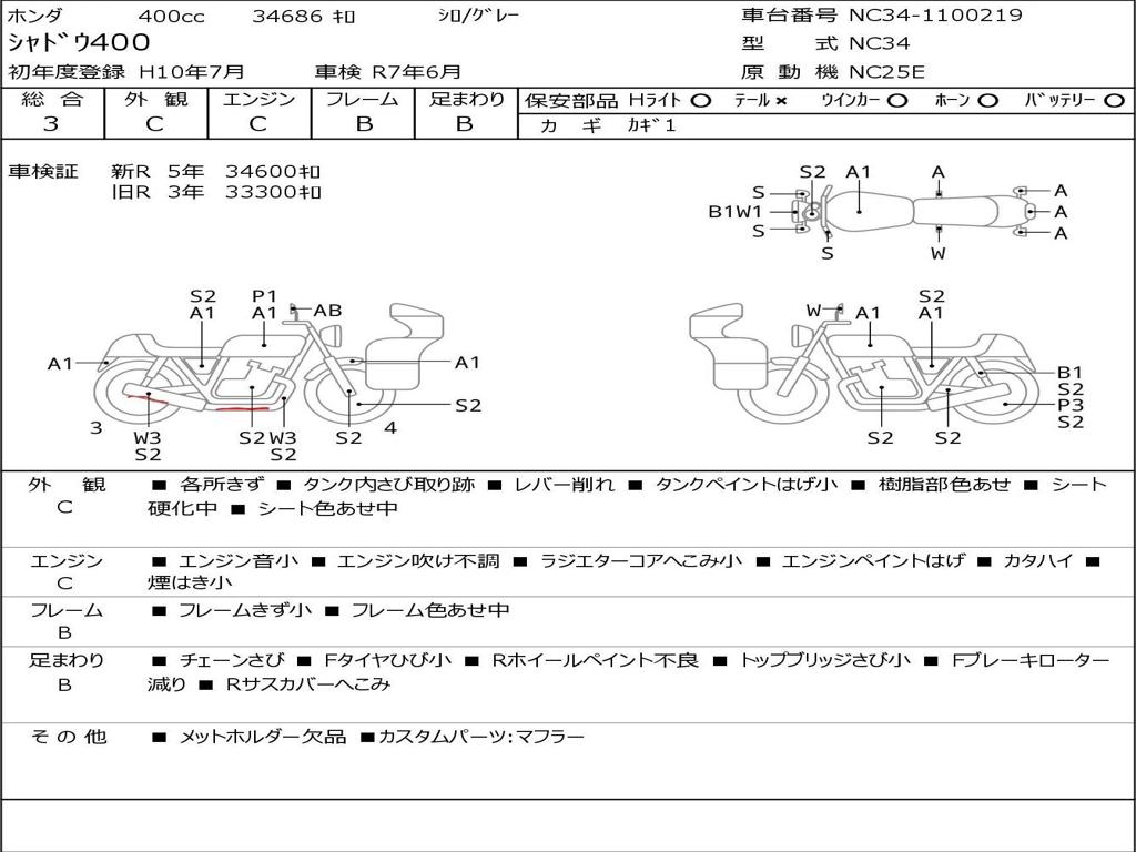 | Номер рамы / VIN | NC34-1100219 |