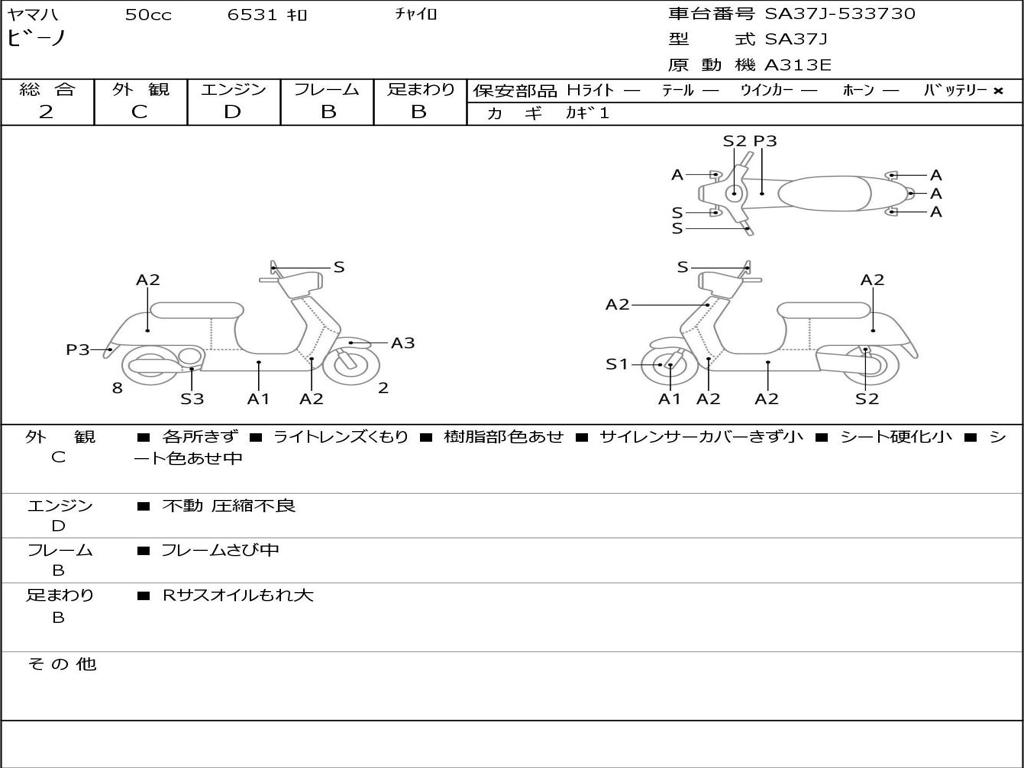 | Номер рамы / VIN | SA37J-533730 |