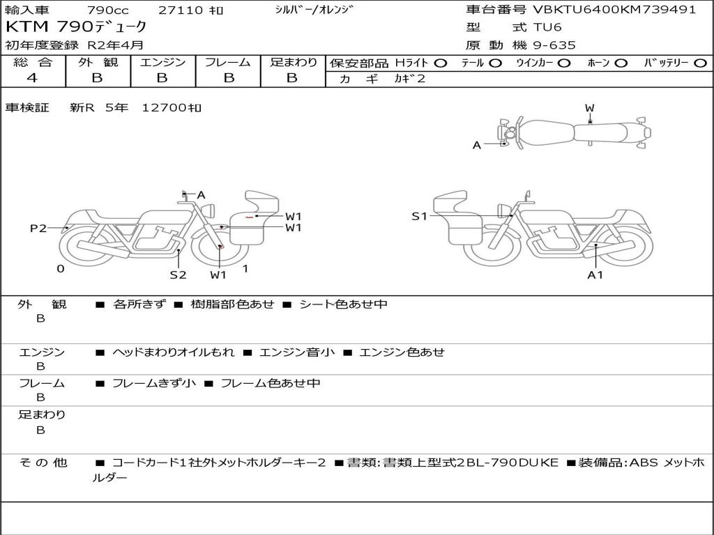 | Номер рамы / VIN | VBKTU6400KM739491 |