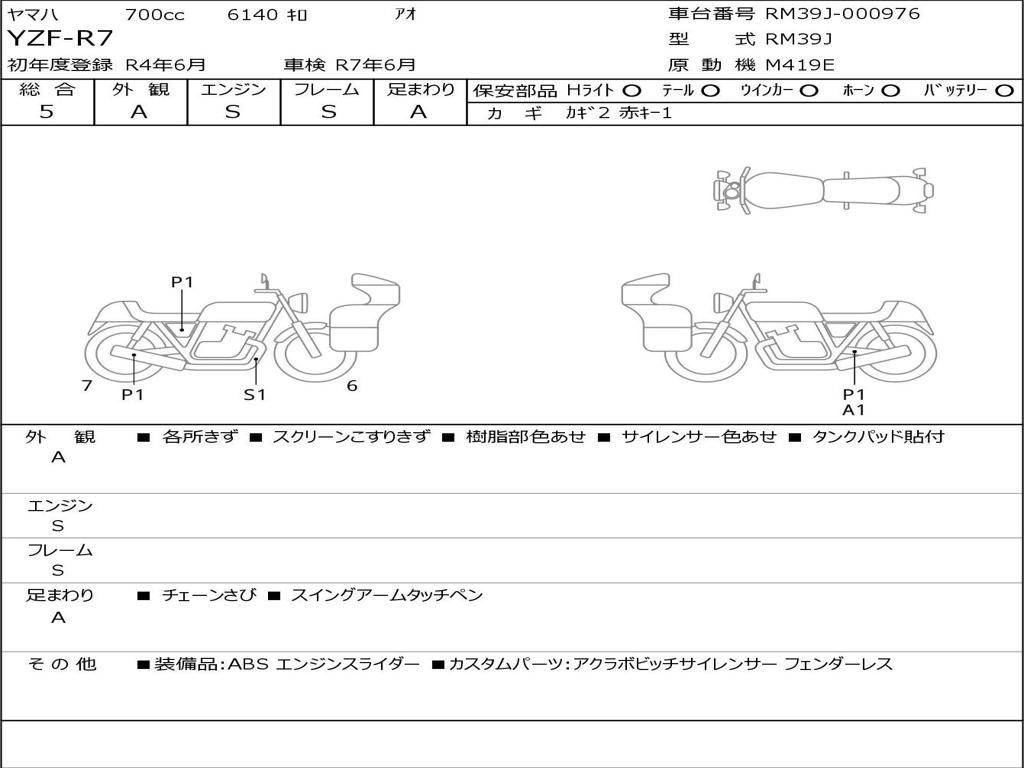 | Номер рамы / VIN | RM39J-000976 |