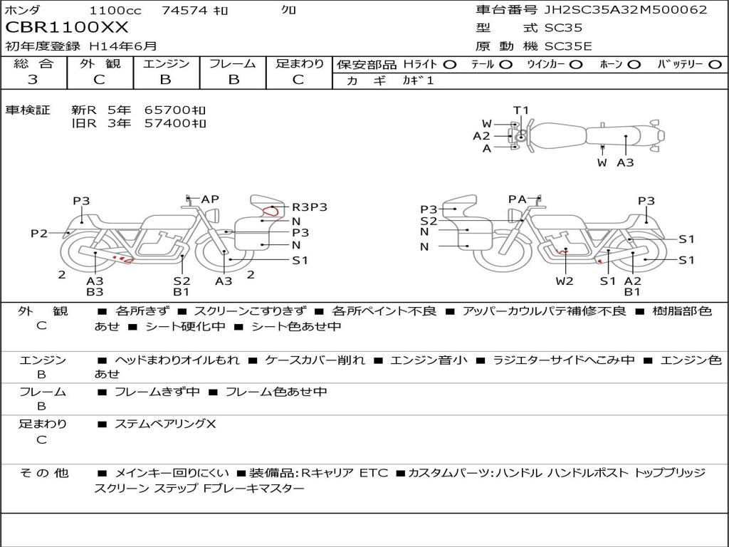| Номер рамы / VIN | JH2SC35A32M500062 |