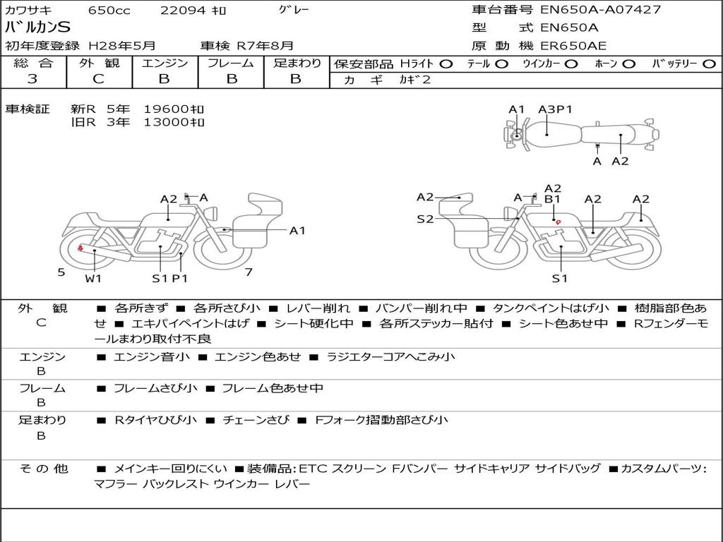 | Номер рамы / VIN | EN650A-A07427 |