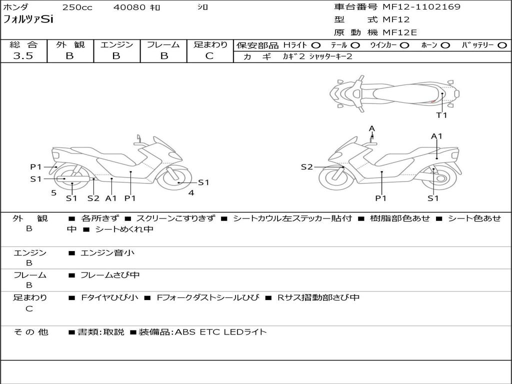 | Номер рамы / VIN | MF12-1102169 |
