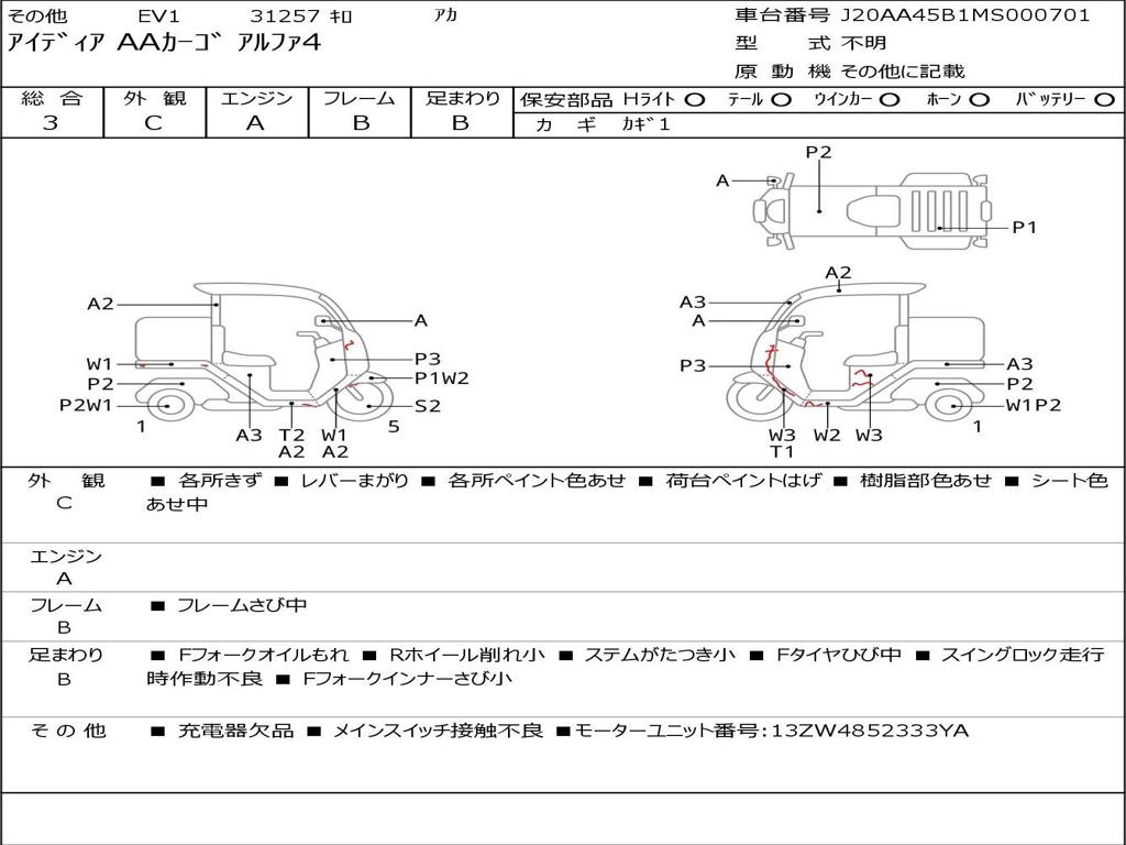 | Номер рамы / VIN | J20AA45B1MS000701 |
