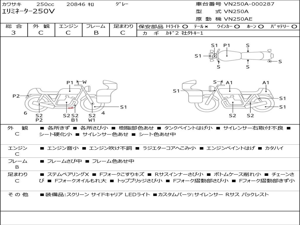 | Номер рамы / VIN | VN250A-000287 |