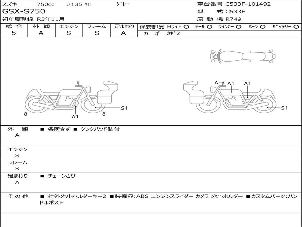 | Номер рамы / VIN | C533F-101492 |