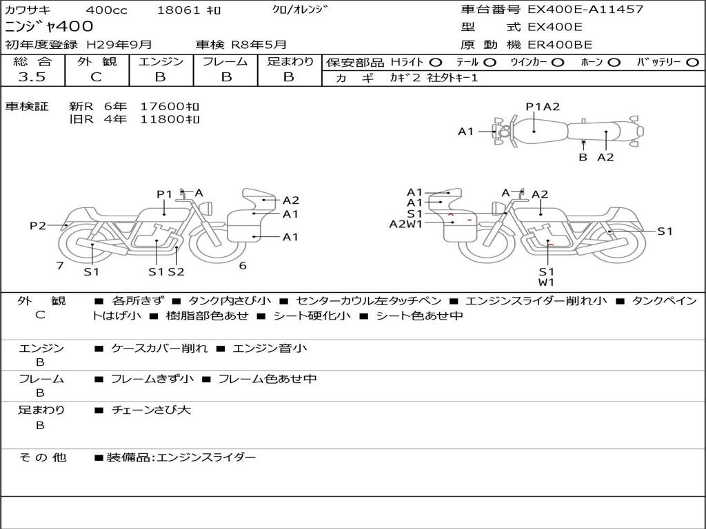 | Номер рамы / VIN | EX400E-A11457 |