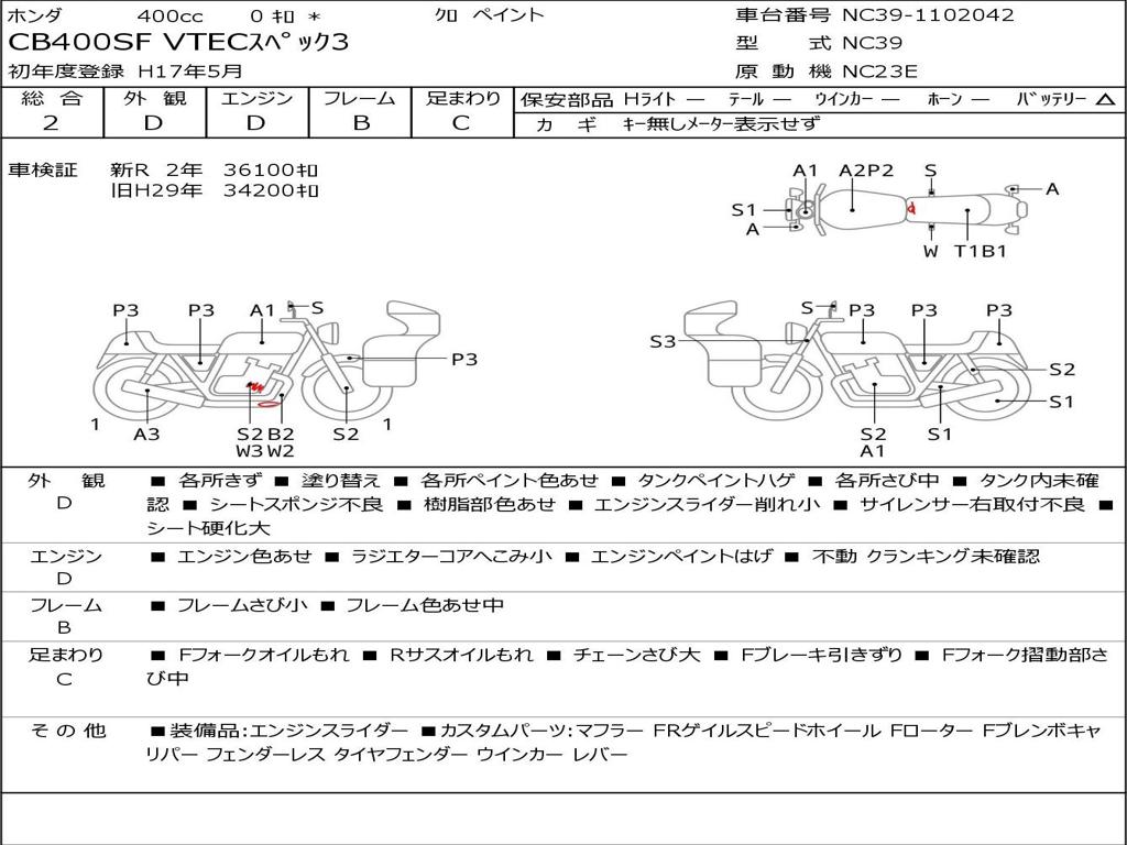 | Номер рамы / VIN | NC39-1102042 |