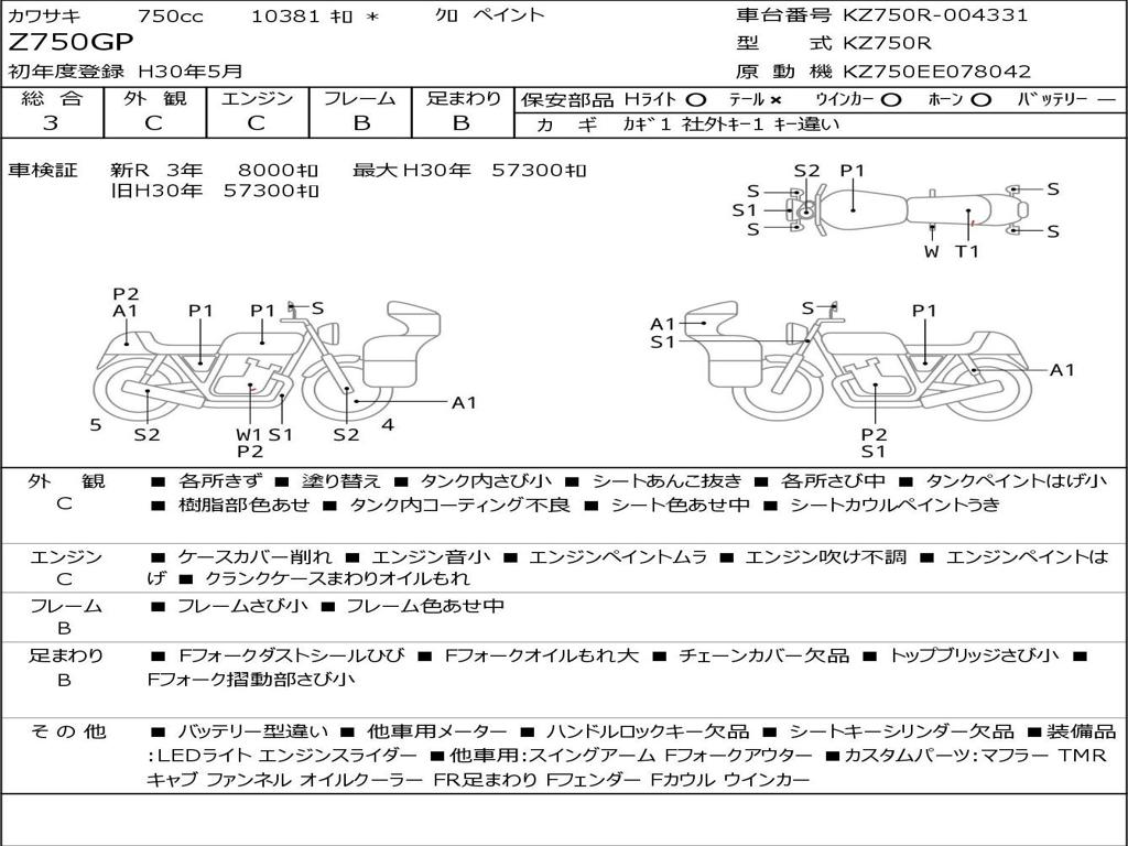 | Номер рамы / VIN | KZ750R-004331 |