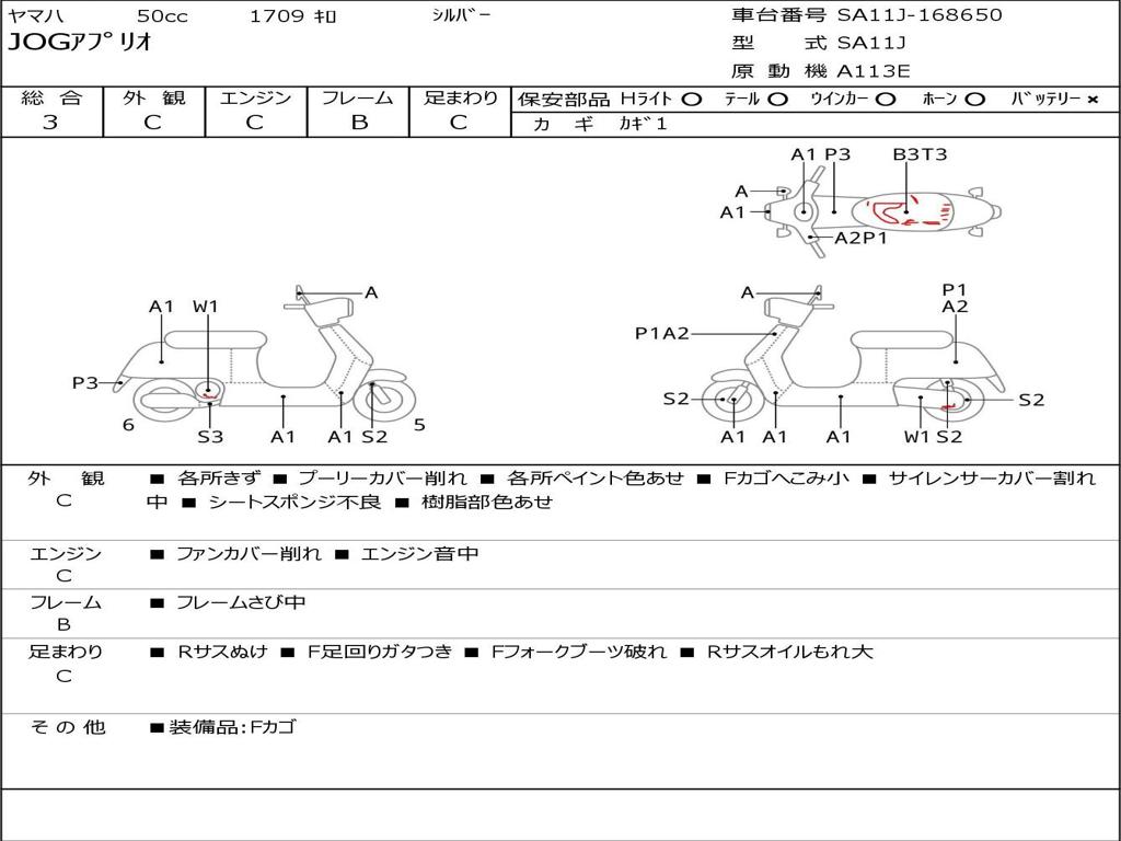 | Номер рамы / VIN | SA11J-168650 |