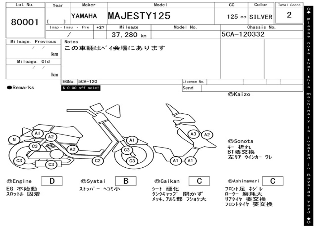 | Аукцион | ARAI BAYSIDE |