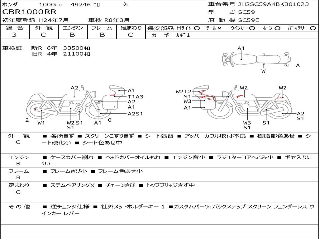| Номер рамы / VIN | JH2SC59A4BK301023 |
