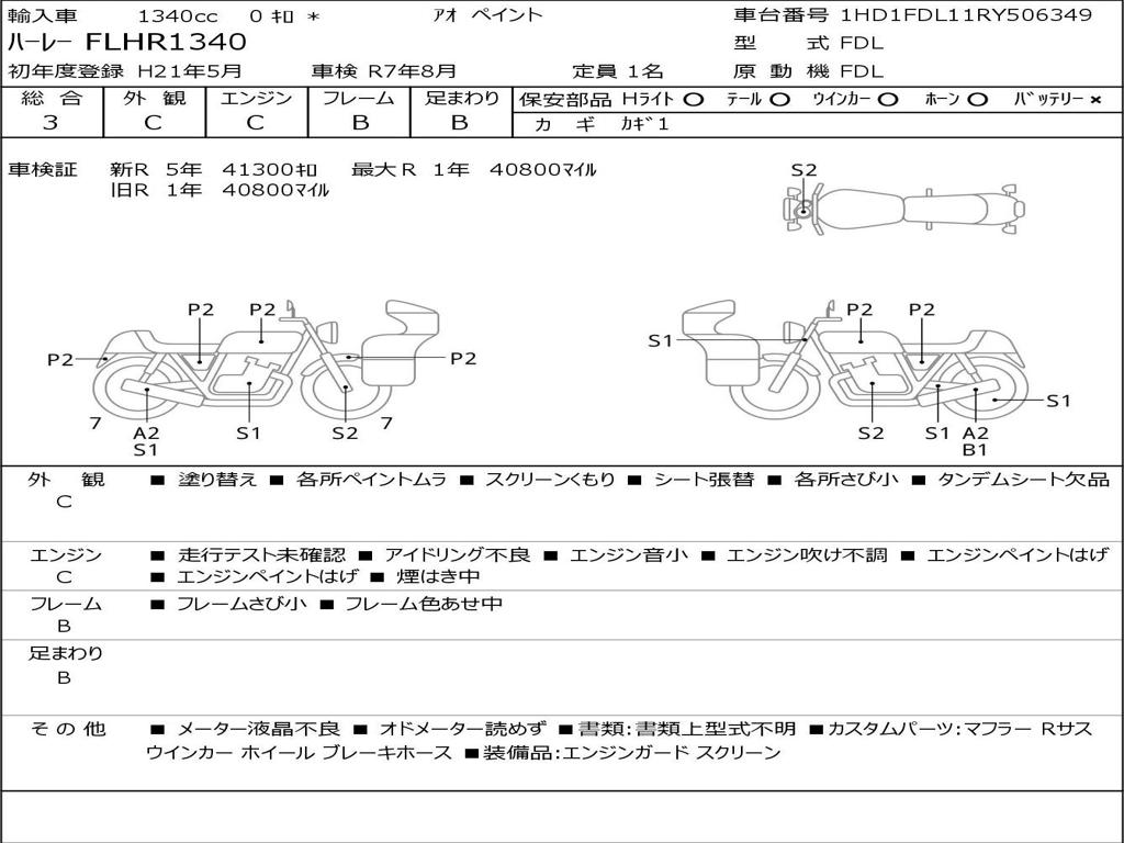 | Номер рамы / VIN | 1HD1FDL11RY506349 |