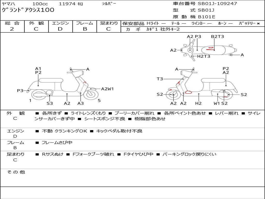 | Номер рамы / VIN | SB01J-109247 |