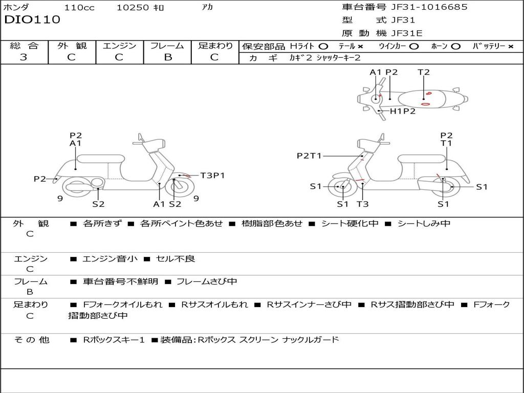 | Номер рамы / VIN | JF31-1016685 |
