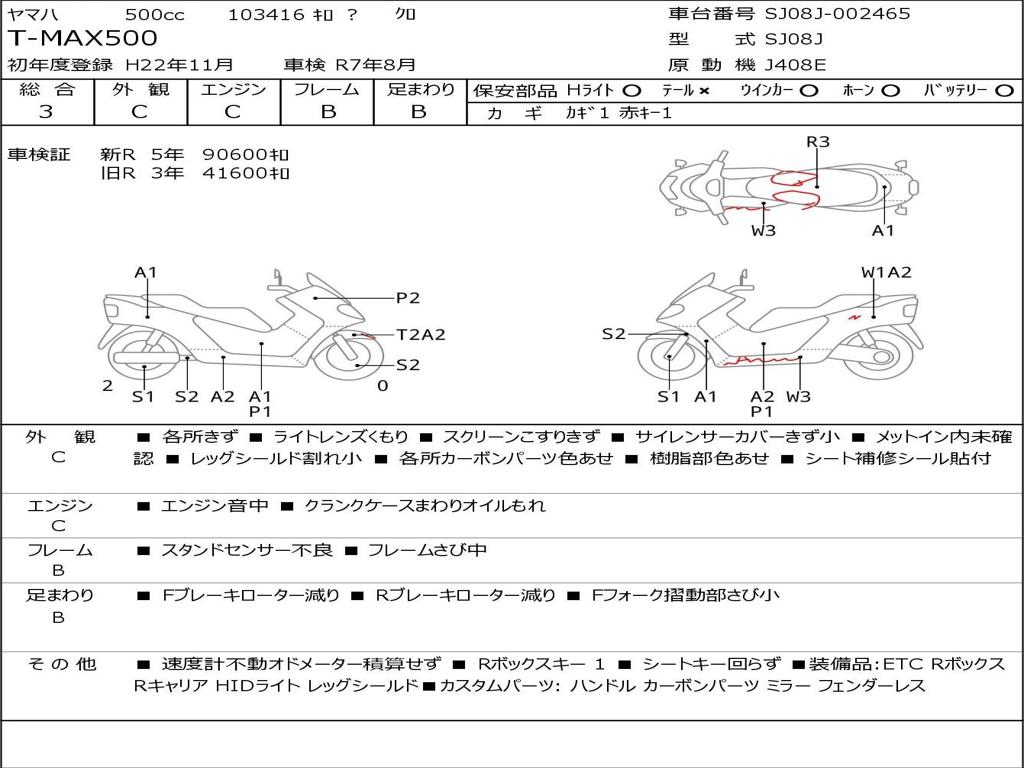 | Номер рамы / VIN | SJ08J-002465 |