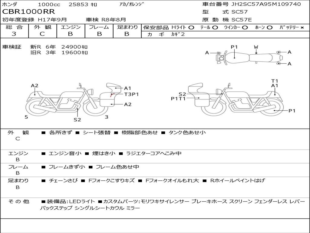 | Номер рамы / VIN | JH2SC57A95M109740 |