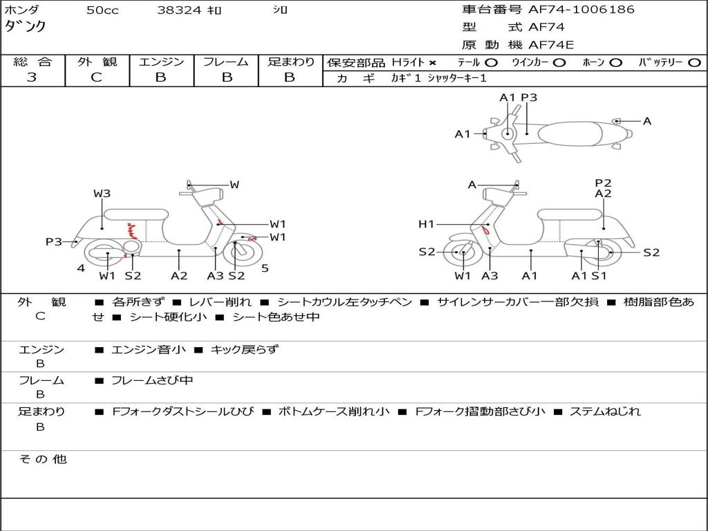 | Номер рамы / VIN | AF74-1006186 |