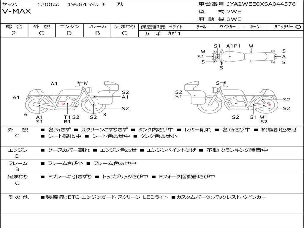 | Номер рамы / VIN | JYA2WEE0XSA044576 |