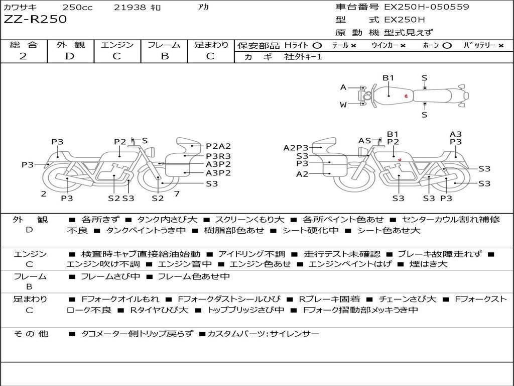 | Номер рамы / VIN | EX250H-050559 |