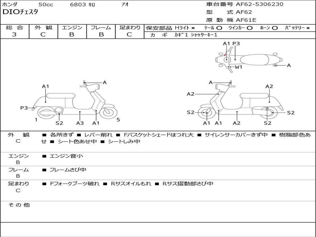 | Номер рамы / VIN | AF62-5306230 |