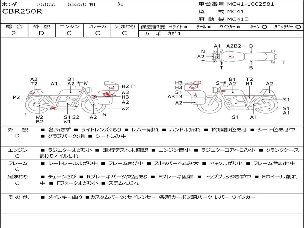 | Номер рамы / VIN | MC41-1002581 |