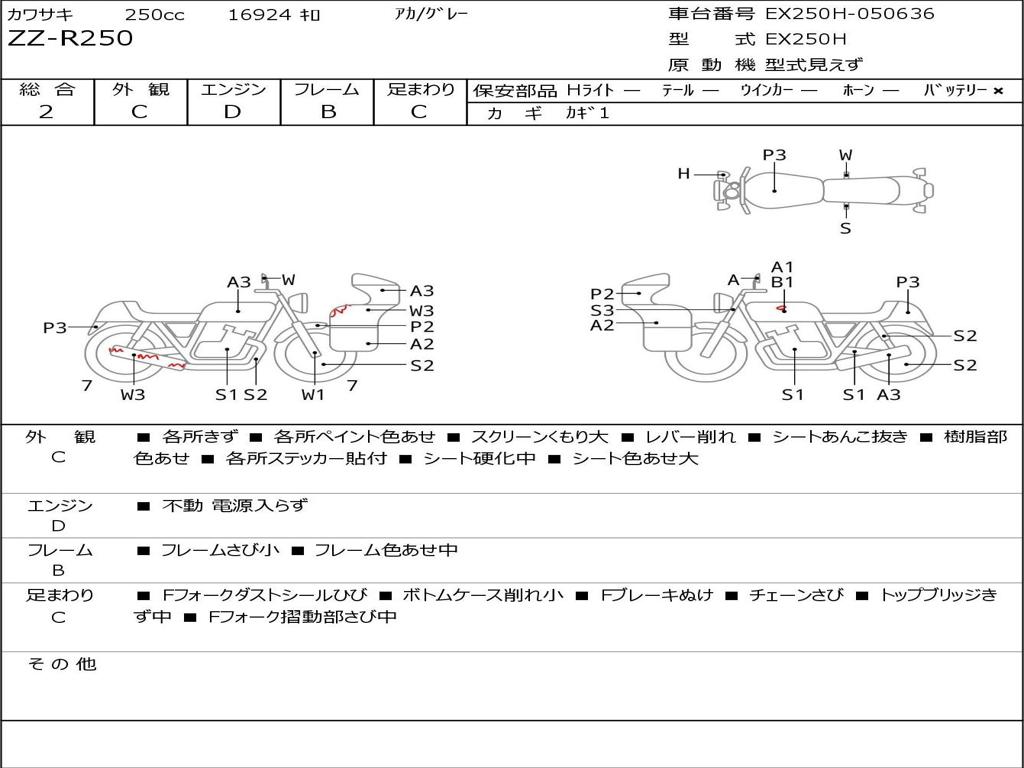 | Номер рамы / VIN | EX250H-050636 |