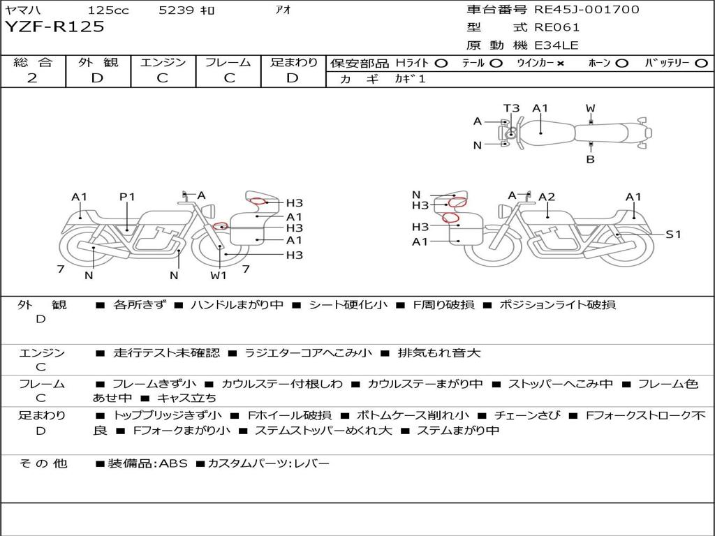 | Номер рамы / VIN | RE45J-001700 |