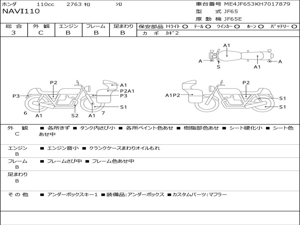 | Номер рамы / VIN | ME4JF653KH7017879 |