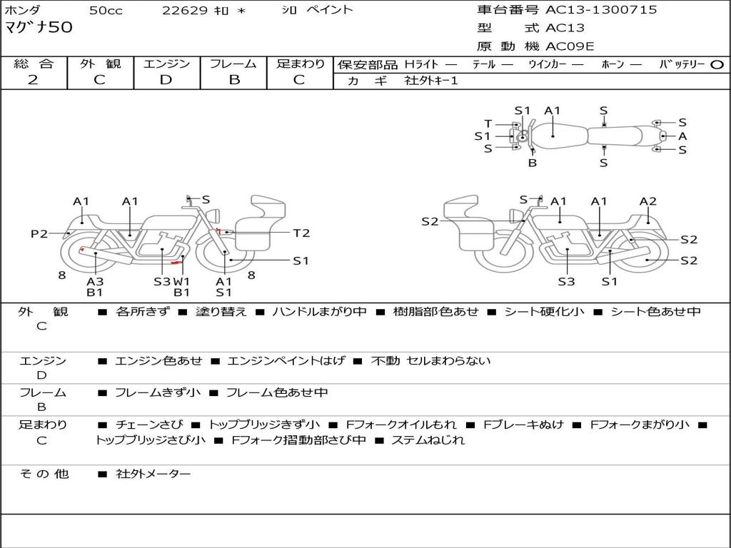 | Номер рамы / VIN | AC13-1300715 |