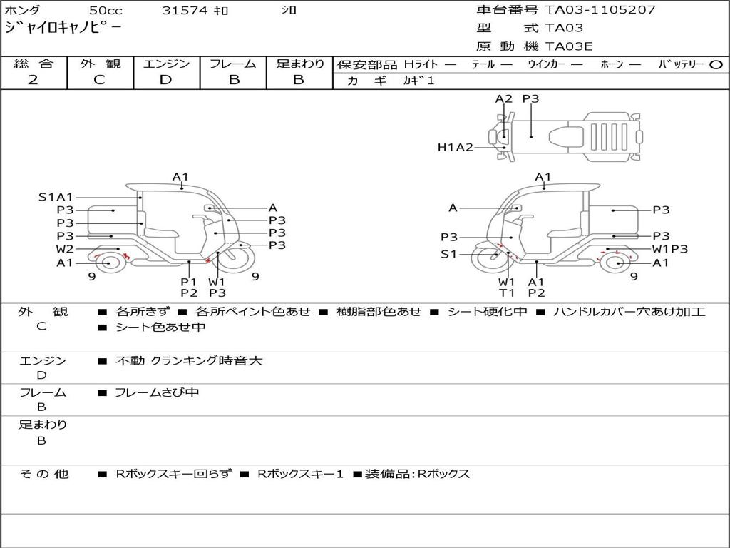 | Номер рамы / VIN | TA03-1105207 |