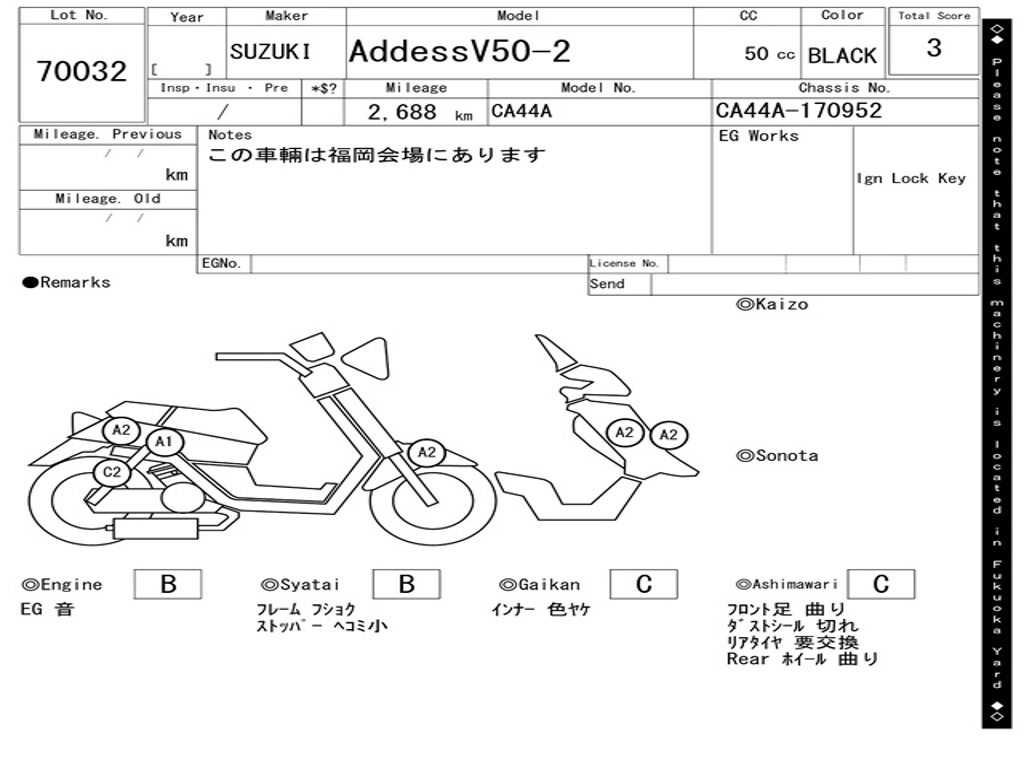 | Номер рамы / VIN | CA44A-170952 |