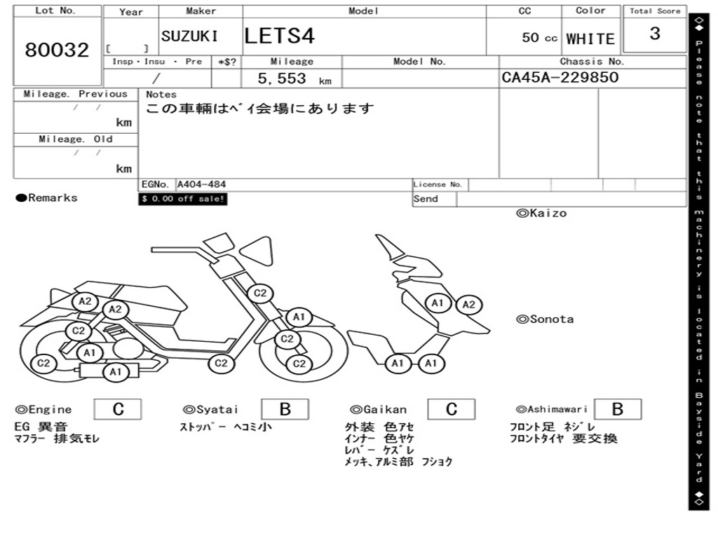 | Аукцион | ARAI BAYSIDE |