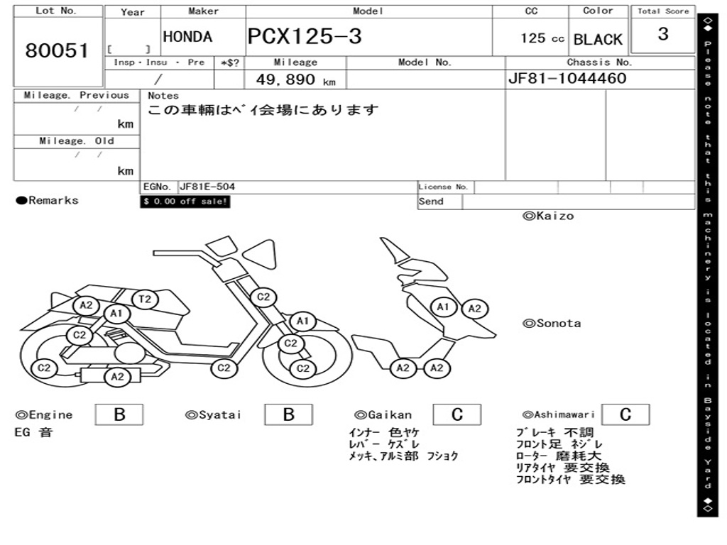 | Номер рамы / VIN | JF81-1044460 |