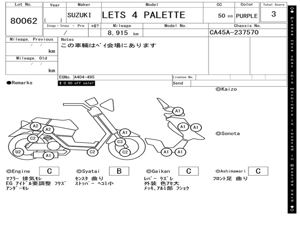 | Аукцион | ARAI BAYSIDE |
