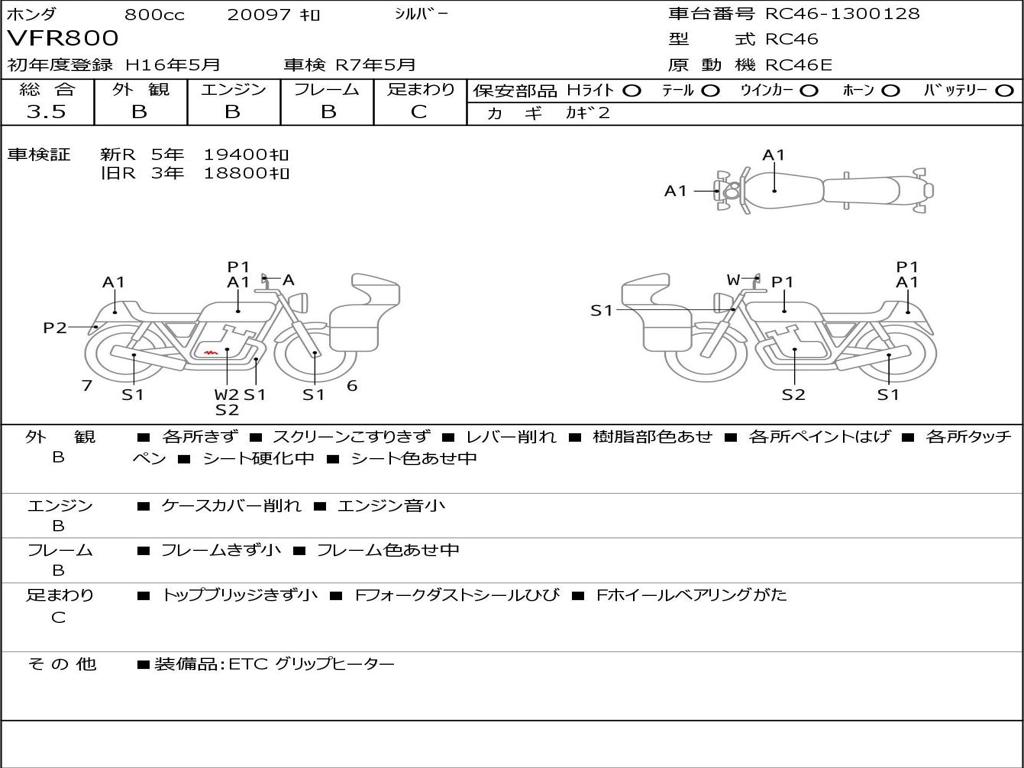 | Номер рамы / VIN | RC46-1300128 |