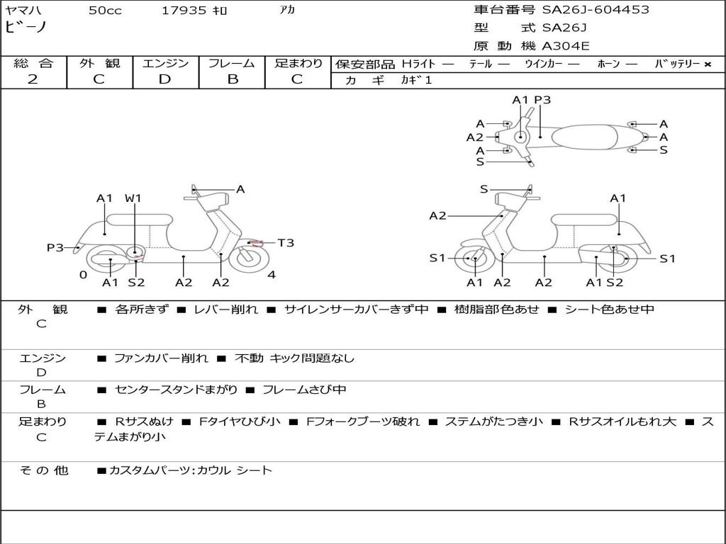 | Номер рамы / VIN | SA26J-604453 |