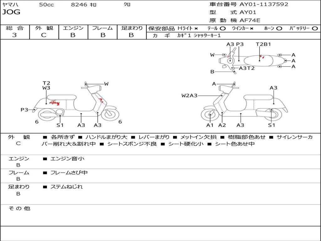 | Номер рамы / VIN | AY01-1137592 |