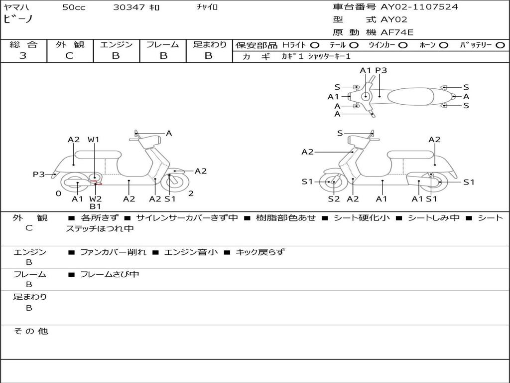 | Номер рамы / VIN | AY02-1107524 |