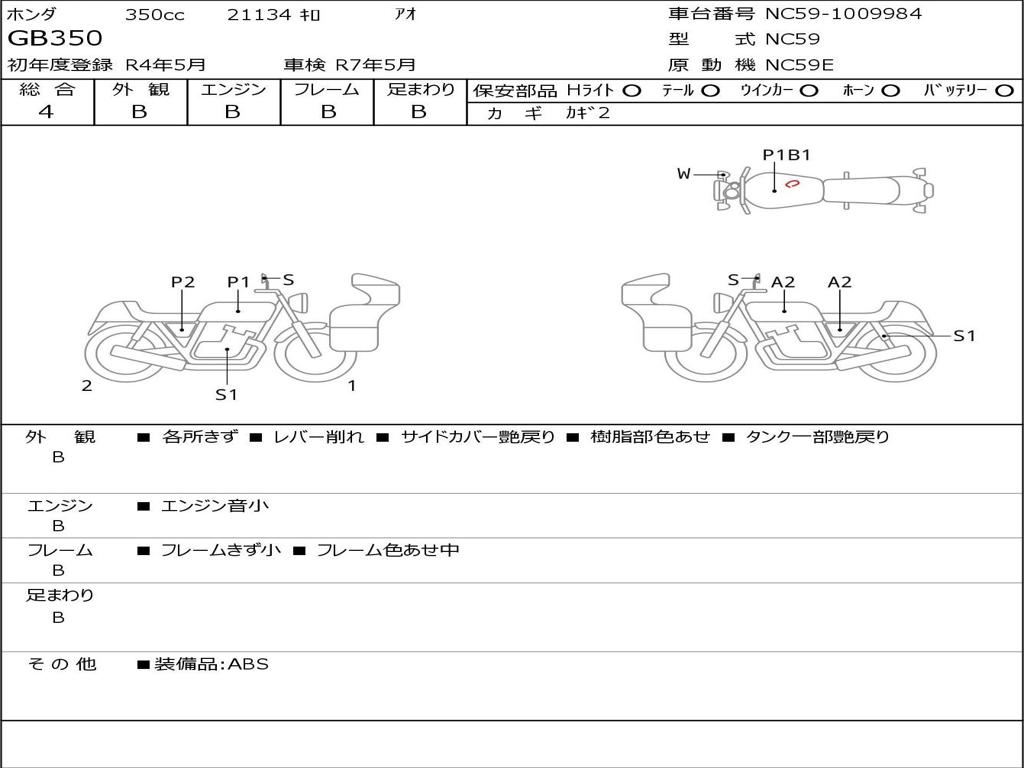| Номер рамы / VIN | NC59-1009984 |