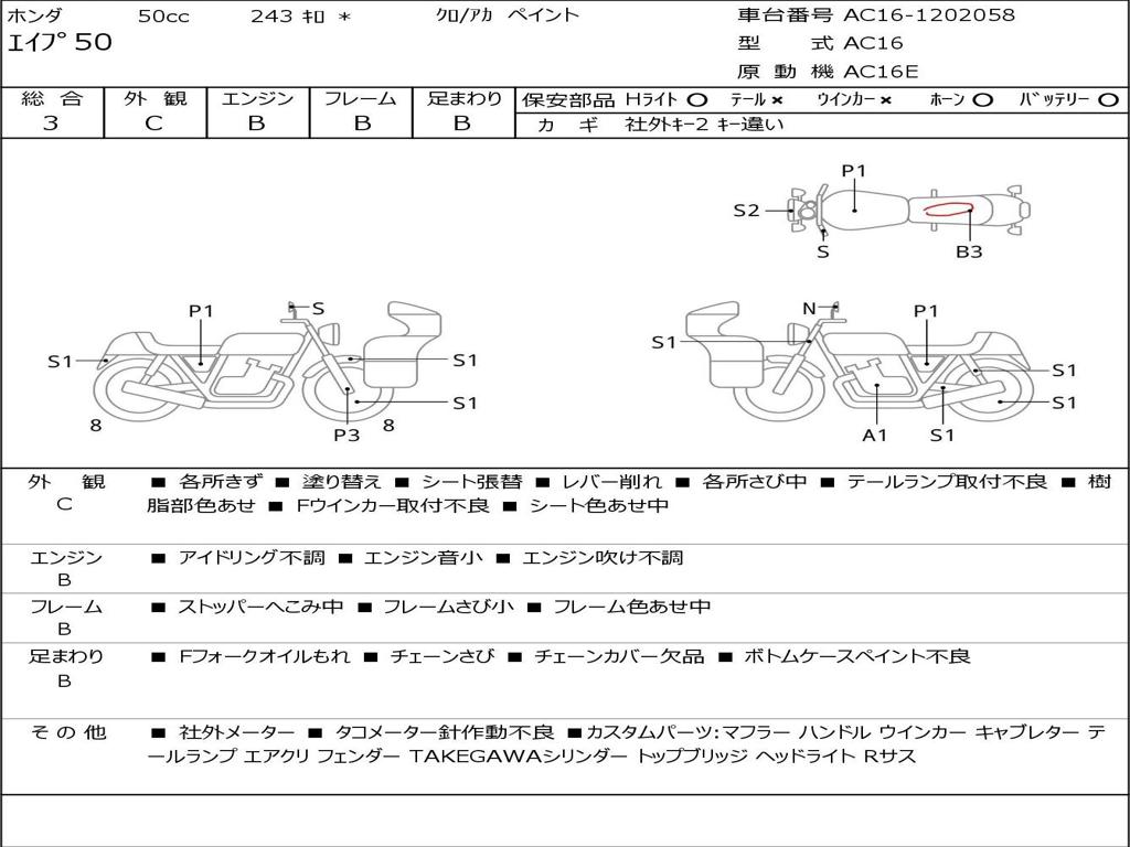 | Номер рамы / VIN | AC16-1202058 |