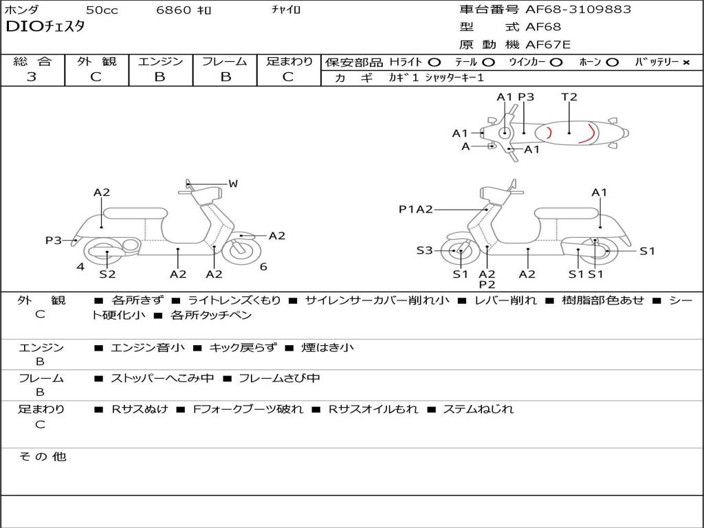 | Номер рамы / VIN | AF68-3109883 |