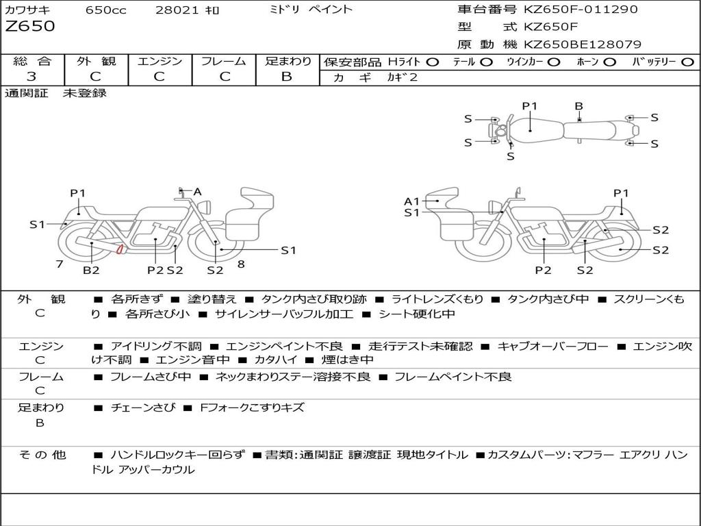 | Номер рамы / VIN | KZ650F-011290 |