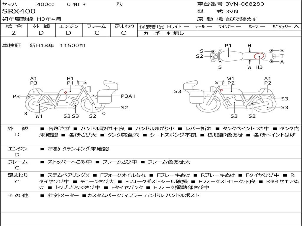 | Номер рамы / VIN | 3VN-068280 |